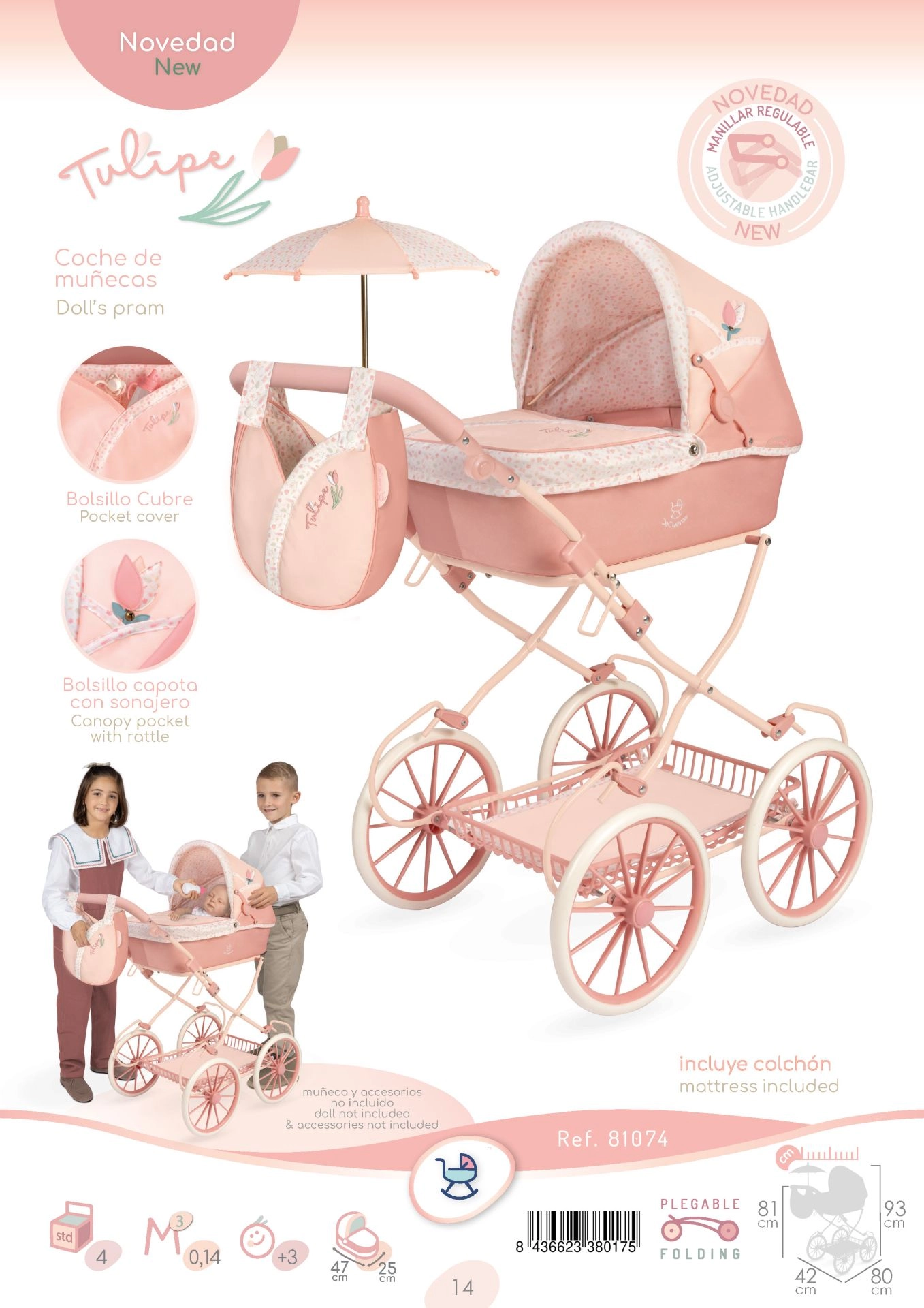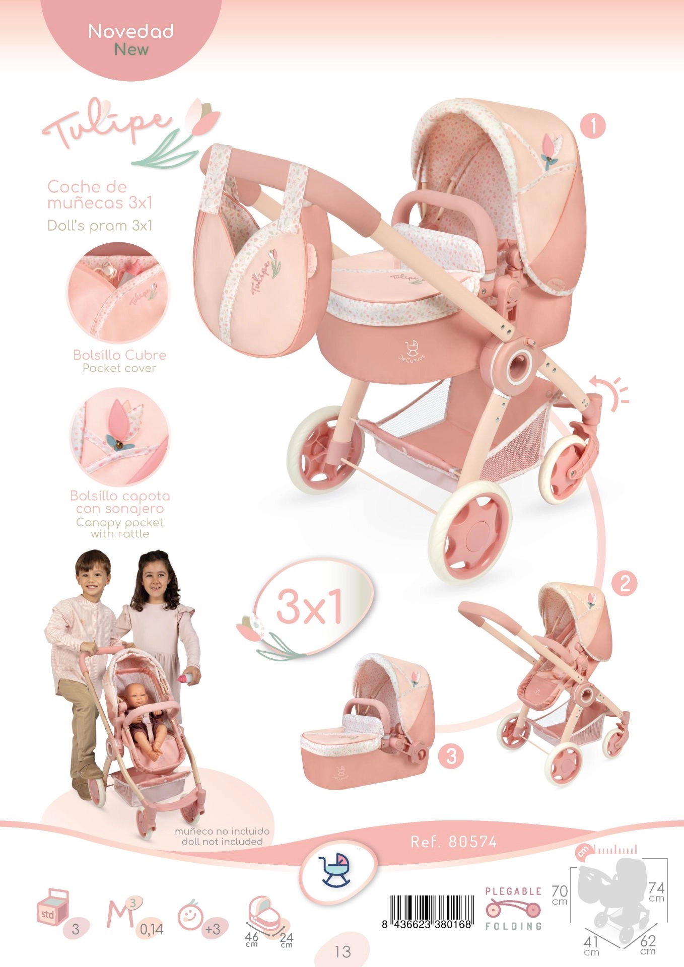 V ponuke nájdete hlboké aj športové kočíky DeCuevas pre bábiky, kombinácie 2 v 1/3 v 1, golfky aj moderné trojkombinácie. Detaily ako výškovo nastaviteľná rukoväť, otočné kolieska, skladacia konštrukcia, prateľné poťahy a úložný košík zabezpečujú pohodlie, jednoduchú manipuláciu a dlhú životnosť. Nechýbajú tašky, prebaľovacie podložky, nosiče a ďalšie príslušenstvo pre bábiky v rovnakom dizajne. DeCuevas myslí na rôzne vekové kategórie aj veľkosti bábik (cca 30–55 cm), takže ľahko zvolíte model podľa výšky dieťaťa aj preferovaného štýlu. K dispozícii sú sety pre bábiky, postieľky, kolísky, šatníky a jedálenské stoličky pre bábiky, ktoré ladia s kočíkmi. Vďaka odolnej konštrukcii a štýlovým kolekciám prinášajú výrobky DeCuevas deťom dlhodobú radosť a inšpiráciu ku hre.