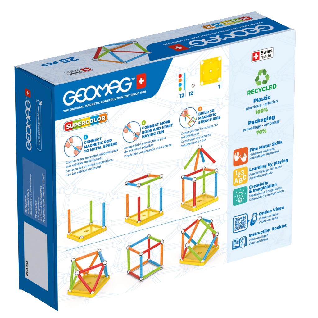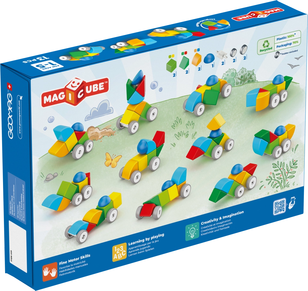 Vyberte si z obľúbených radov Geomag: Magicube – magnetické kocky pre najmenších, Classic/Pro-L a Panels – tyčinky, guľôčky a panely pre pokročilých, a Mechanics či Mechanics Gravity na experimenty s prevodmi, rotáciou a gravitáciou. Geomag podporuje STEM vzdelávanie, fyziku, geometriu aj kreatívny dizajn; edície Supercolor a Glitter ohúria farbami a efektmi. Vybrané sady využívajú recyklované materiály.