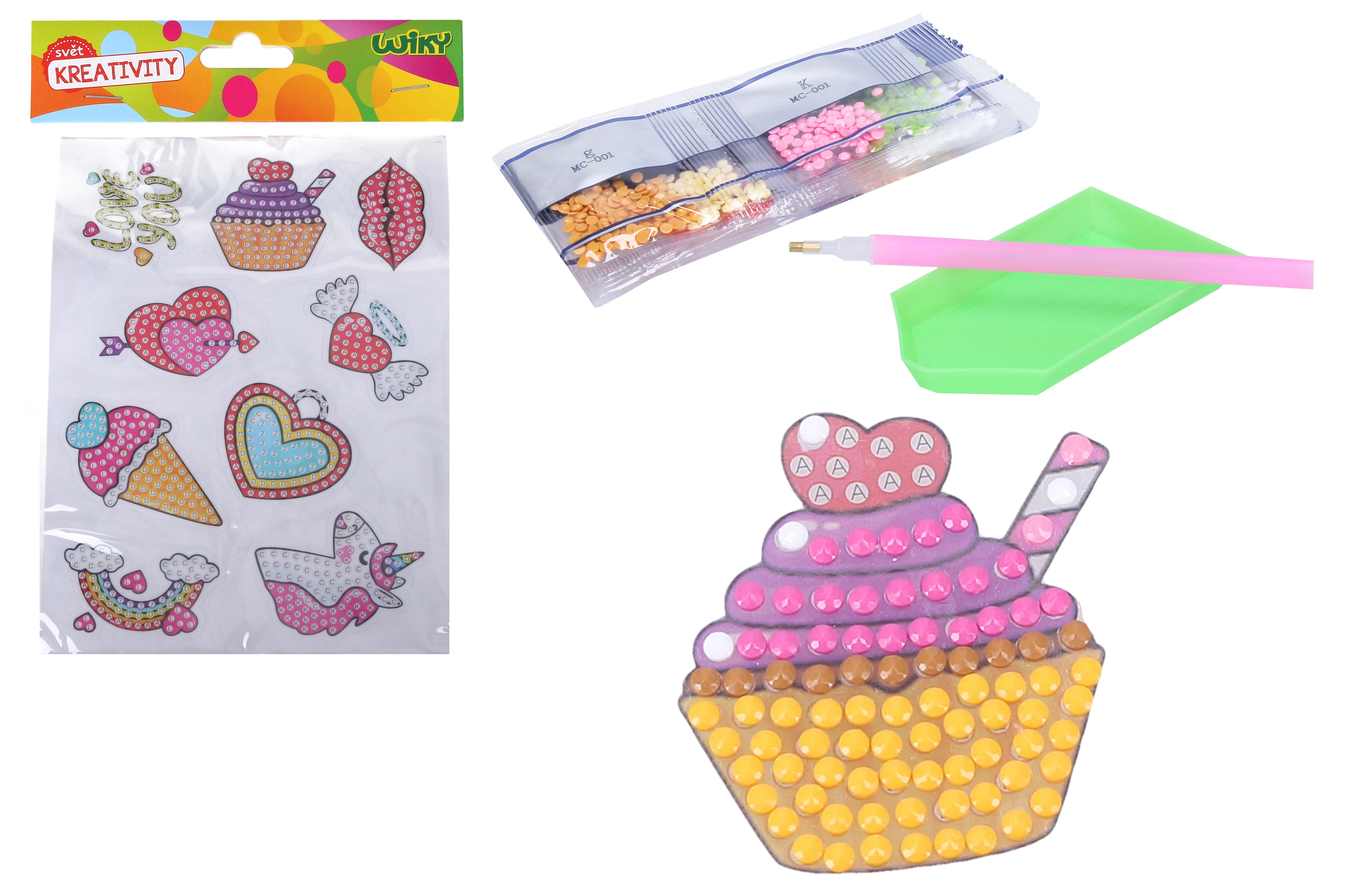 Každá sada diamantového maľovania obsahuje predtlačené plátno s lepiacou vrstvou a legendou DMC, akrylátové kamienky (okrúhle/hranaté), aplikátor/pero s voskom, tácku a vrecúška na triedenie; často aj pinzetu. Vďaka kvalitnej tlači, silnej priľnavosti a presnej potlači sa kamienky jednoducho ukladajú a výsledná diamantová mozaika žiari ako 5D krištáľ. Tvorenie je ľahké na začiatok, no vedie k detailnému obrazu a rozvíja sústredenie aj jemnú motoriku.