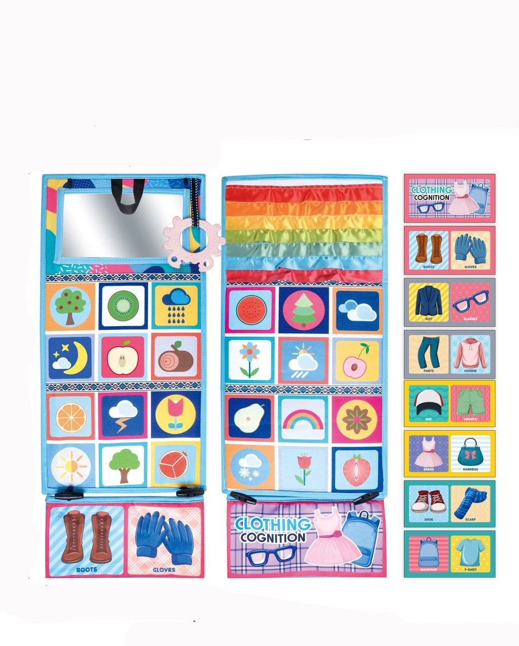 Látkové knižky sú ľahké, odolné a prateľné v práčke, takže sa hodia do kočíka, postieľky aj na cesty. Praktické pútko, suchý zips či plastový krúžok umožnia pripnutie, pevné švy a kvalitné textílie zvládnu časté stláčanie aj hryzenie. Materiály sú šetrné k detskej pokožke a hračky spĺňajú bezpečnostné normy pre najmenších (0m+, 3m+).