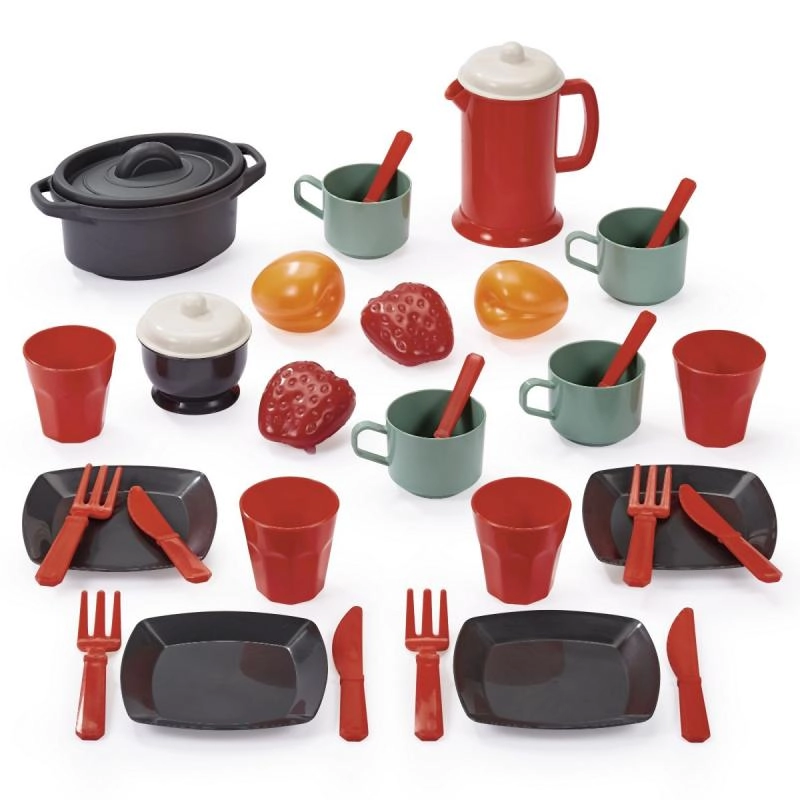 Nájdete tu drevené potraviny s hladkými hranami aj ľahké plastové potraviny – oboje kvalitné, bezpečné a odolné. Obľúbené sú krájacie sety ovocia a zeleniny so suchým zipsom alebo magnetom, pizze, sendviče, ryby, syr či vajcia, často v praktickej debničke alebo v nákupnom košíku. Verné detaily, potlačené obaly a doplnky podporujú autenticitu a prehľadné triedenie potravín. Tieto potraviny pre deti majú aj edukatívny prínos: rozvíjajú jemnú motoriku a koordináciu oko–ruka, rozširujú slovnú zásobu, pomáhajú trénovať počítanie, porovnávanie cien a zdravé stravovanie. Perfektne doplnia detskú kuchynku, pokladňu aj stánok – hra na obchod bude kompletná, zábavná a lákavá každý deň. Vyberte sety a sady podľa témy a materiálu a podporte fantáziu, spoluprácu aj samostatnosť.