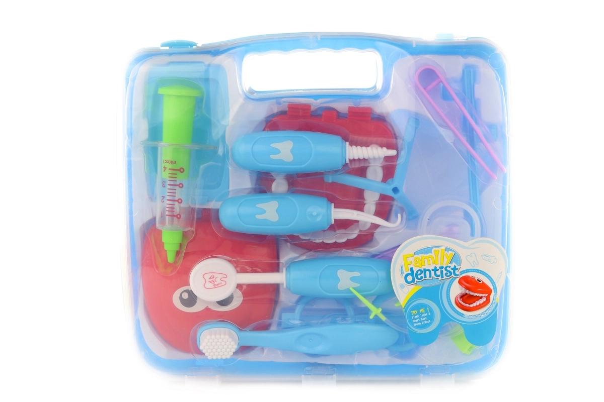 Zubárska sada pre deti často zahŕňa detské zrkadlo, sondu, kliešte, pinzetu, striekačku, vŕtačku, kefku, zubnú pastu a model zubov; nechýba ani lekársky plášť či čiapka a praktický lekársky kufrík. Ergonomické tvary pre malé ruky, bez ostrých hrán a z bezpečných materiálov (drevo, plast, textil) podporujú jemnú motoriku, komunikáciu a empatiu a pomáhajú odbúrať strach zo zubára.