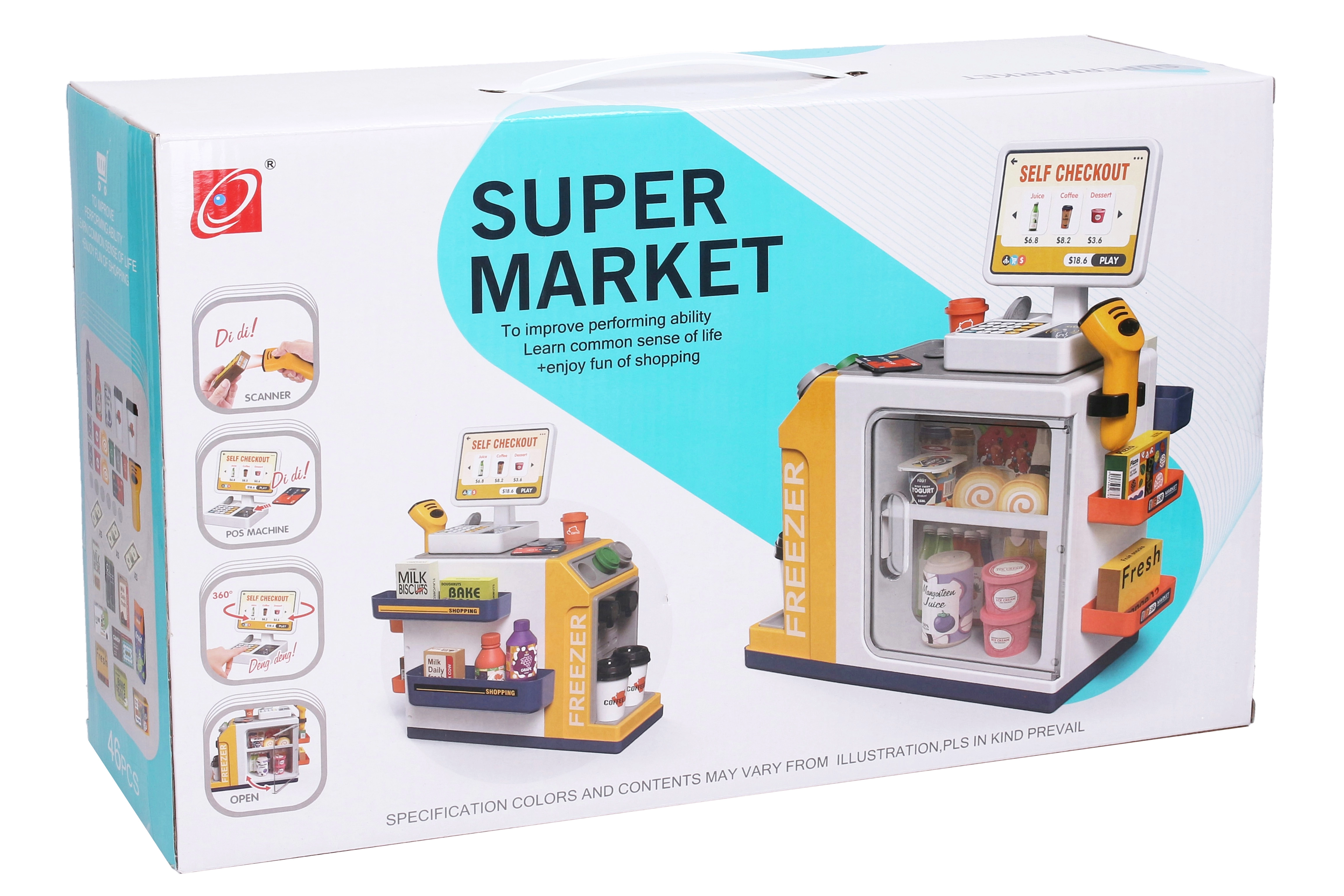 Môžete voliť medzi drevenými aj plastovými variantmi s kvalitným spracovaním, bezpečnými hladkými hranami a odolnou konštrukciou. Nechýba sada cenoviek a etikiet, platobná karta, účtenky, regály a pulty – skrátka všetko, čo detský supermarket, pokladničný set či detská predajňa potrebuje na kreatívnu a dlhotrvajúcu zábavu doma aj v škôlke.