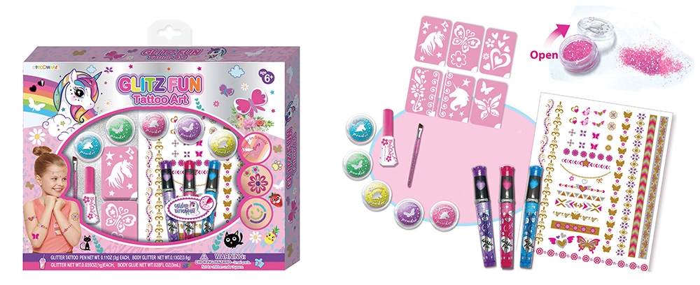 Dovoľte deťom otvoriť si vlastné tetovacie štúdio a premeniť fantáziu na farby na koži – kategória Tatérka je o kreatívnej, bezbolestnej a bezpečnej hre na profesie. Dočasné tetovania pre deti, detské tetovačky a tetovacie sady pre malé tatérky prinášajú autentický zážitok zo salónu krásy bez ihiel, len kopec zábavy a nápadov.