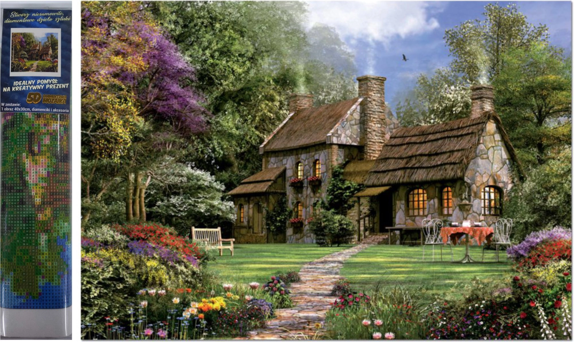 Každá DIY sada (kit) na diamantové maľovanie obsahuje samolepiace plátno s predlohou a symbolmi, trblietavé kamienky (okrúhle aj štvorcové), aplikačné pero, vosk/lepidlo a tácku. Motívy Mesto a stavby sú dostupné v rôznych rozmeroch, s plnou aj čiastočnou výplňou (full/partial drill), pre začiatočníkov aj pokročilých. Vďaka presnej potlači a kvalitnému lepidlu na plátne je práca jednoduchá, presná a zábavná.