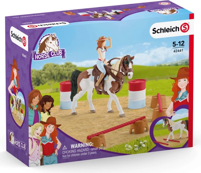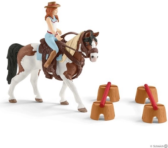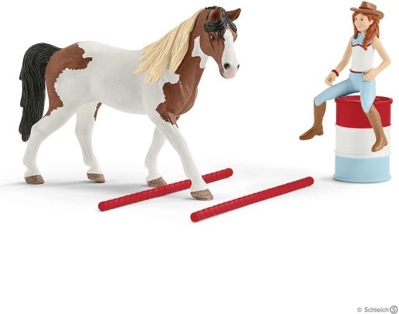 Westernová jazdecká sada Hannah prináša do detskej izby atmosféru pretekov barrel racing. Set ponúka farebné sudy a nízke prekážky, ktoré možno ľubovoľne rozmiestniť, takže si dieťa ľahko vytvorí vlastnú jazdeckú dráhu. Vďaka odnímateľnému sedlu a uzde môže Hannah koňa pripraviť na tréning aj preteky.