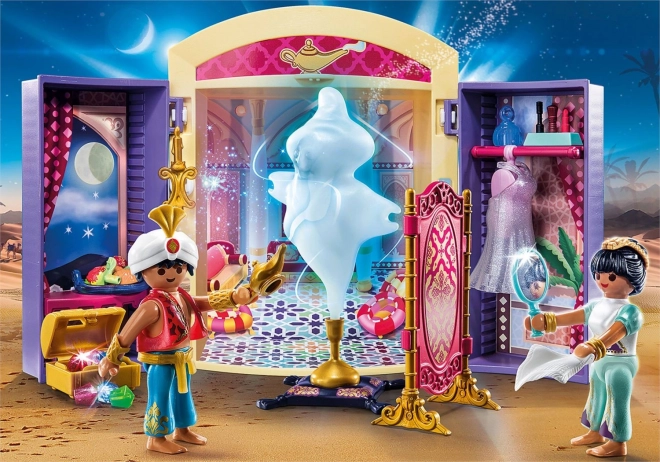 Komnata paláca, truhlica s pokladom a exotická výzdoba vytvárajú autentické orientálne prostredie, ktoré podporuje kreatívne hranie.