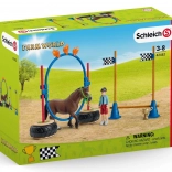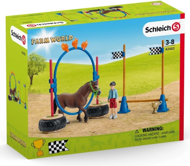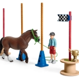 Pripravte svojho waleského poníka na preteky v agility a zistite, či dokáže prekonať všetky prekážky s istotou. Tento set obsahuje všetko, čo potrebujete pre realistický tréningový zážitok, vrátane figúrky chlapca, jazdeckej prilby a prekážok s vlajkami štart-cieľ. Detaily sú pre Schleich typické a približujú život na vidieku.