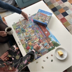 Objavujte príbehy a tajomstvá ukryté v malebnej scéne dvora plného relikvií. Puzzle „Hrnce a haraburdy“ zaujme sýtymi farbami, množstvom detailov a motívom, ktorý neomrzí ani po opakovanom skladaní. Ideálny ako darček pre milovníkov starožitností aj ako zábava pre celú rodinu.