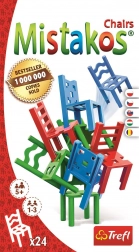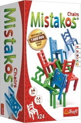 Zábavná zručnostná hra TREFL Mistakos: stoličky prináša napätie aj smiech do každej rodinnej chvíľky alebo party. Úlohou je šikovne ukladať stoličky na seba a udržať vratkú vežu v rovnováhe. Hru možno hrať dvojako, takže sa len tak neomrzí. Farebné plastové stoličky sú bezpečné, ľahké a ideálne na rozvoj jemnej motoriky, trpezlivosti aj strategického myslenia. Odporúčané od 5 rokov.