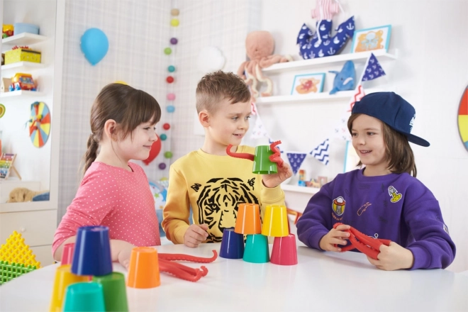 Súprava obsahuje farebné kelímky a chápadlá, ktoré zaručujú skvelú zábavu a rozvoj koordinácie.