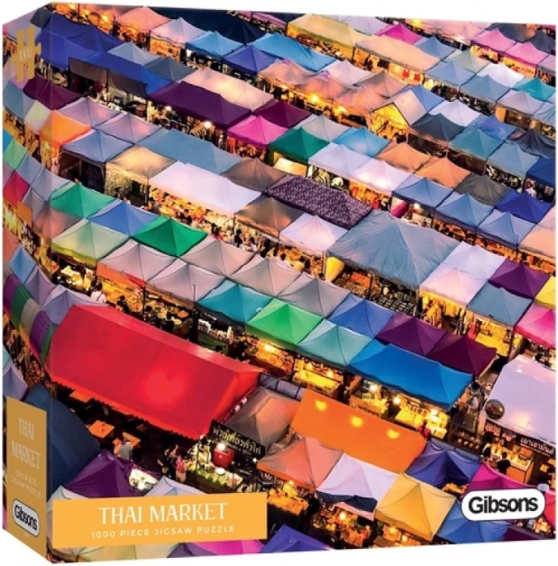 Preneste sa na rušné uličky Ázie s motívom thajského trhoviska a užite si chvíle pokoja pri skladaní. Puzzle GIBSONS vyniká precíznym výsekom a sýtymi farbami, ktoré zvýraznia detailnú ilustráciu plnú života a atmosféry.