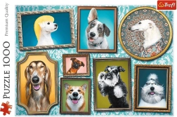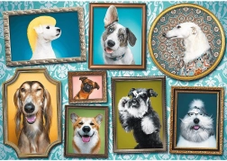 Rozveseľte si voľné chvíle puzzle s motívom veselých psíkov v psej galérii. Precízne vyrezané dieliky dobre do seba zapadajú a vytvárajú detailný, farebný obraz s rozmerom 68,3 × 48 cm.