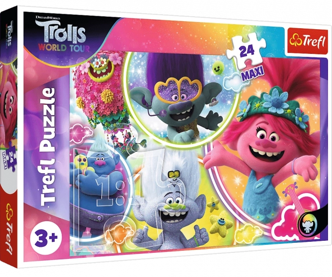 Užite si spoločné chvíle s deťmi s farebným puzzle TREFL z filmu Trollovia 2. Veľké MAXI dieliky sú ideálne pre malé ruky, skladačka má 24 dielikov a po zložení meria približne 60 × 40 cm. Skvelá voľba na rozvoj jemnej motoriky, trpezlivosti a logického myslenia detí od 3 rokov.