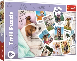 Puzzle Fotky z dovolenky s 300 dielmi ponúkajú zábavnú výzvu pre každého milovníka skladačiek. Predstavujú zábavné obrázky psíkov z ciest a sú ideálne pre chvíle relaxu.