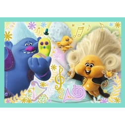Užite si zábavu s obľúbenými hrdinami z filmu Trollovia 2: Svetové turné v sade 4v1. Progresívne puzzle ponúkajú rôznu náročnosť s 35, 48, 54 a 70 dielikmi, ideálne na rozvoj zručností detí od 4 rokov. Každý obrázok po zložení meria približne 28,5 × 20,5 cm.