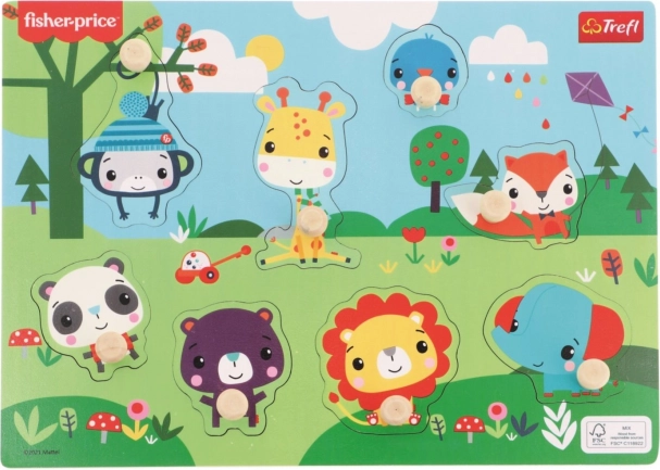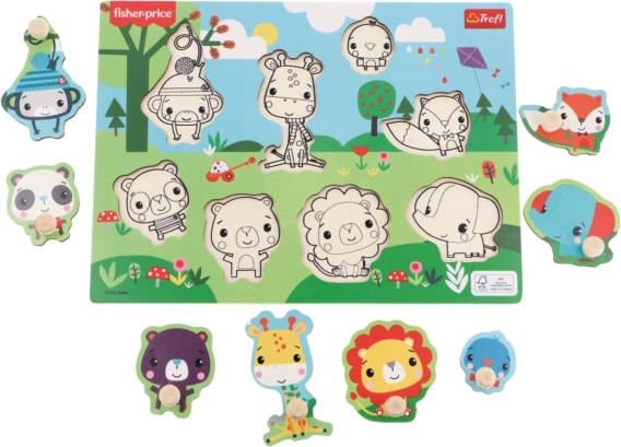 Objavte prvú skladačku, ktorá deti hravou formou učí rozpoznávať tvary a zvieratá. Drevená vkladačka s motívmi divokých zvierat od značky FISHER-PRICE je navrhnutá pre malé ručičky – každý dielik má praktickú úchytku pre ľahké uchopenie.