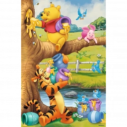 Puzzle Małe co nieco sú inšpirované svetom animovaného seriálu Macko Pú. Táto kartónová skladačka je navrhnutá špeciálne pre malé deti. Živé farby a postavičky z rozprávky lákajú deti k hre.