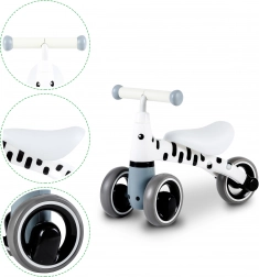 Odrážadlo Zebra je ľahké, s hmotnosťou okolo 2 kg, čo zaisťuje ľahkú manipuláciu deťom. Vďaka pevnému plastovému rámu a mäkkým penovým riadidlám s funkciou zámku otáčania je bezpečnosť na prvom mieste.