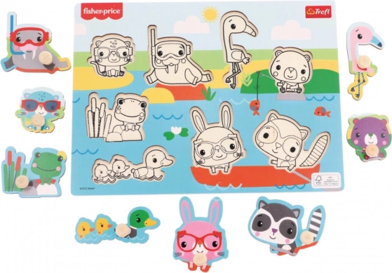 Vďaka farebným obrysom na podkladovej doske môžu deti ľahko nájsť správne miesto pre zvieratko, čo ich nadchýňa objaviteľmi. Súčasťou sú zvieratká ako je mýval, plameniak a kačička, ktoré ešte viac zábavu umocňujú.