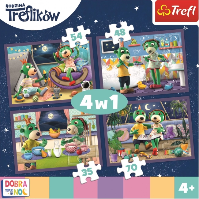 Progresívne puzzle s čarom Treflíkov, vhodné pre deti už od 4 rokov. Obsahuje štyri puzzle s narastajúcou zložitosťou, ideálne pre zlepšovanie zručností.