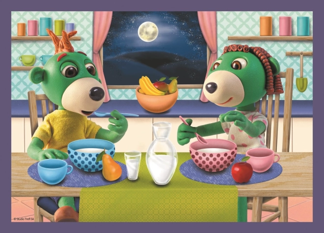 Objavte svet Treflíkov s touto sadou puzzle. Ideálne pre večernú pokojnú zábavu, puzzle Dobrou noc Treflíci prináša radosť a učí zároveň. Sada obsahuje: