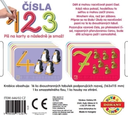 - 16 obojstranných tabuliek, 1 stierateľný fix, 1 hubka na stieranie