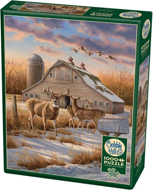 Objavte čaro zimnej krajiny s jeleňmi, stodolou a letiacimi husami – detailná ilustrácia skladá pôsobivý motív, ktorý si zamilujú milovníci prírody aj vidieka. Puzzle COBBLE HILL sú známe svojou precíznou kvalitou a unikátnym výsekom, ktorý prináša jedinečný zážitok zo skladania.