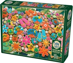 Puzzle COBBLE HILL Tropické sušienky 1000 dielikov poteší všetkých milovníkov skladania, ktorí hľadajú výzvu aj krásny motív. Špeciálna raznica s nepravidelnými dielikmi sa líši od bežnej mriežky, takže skladanie je zábavnejšie a náročnejšie. Kvalitná potlač a sýte farby motívu tropických sušienok vyniknú v každom interiéri.