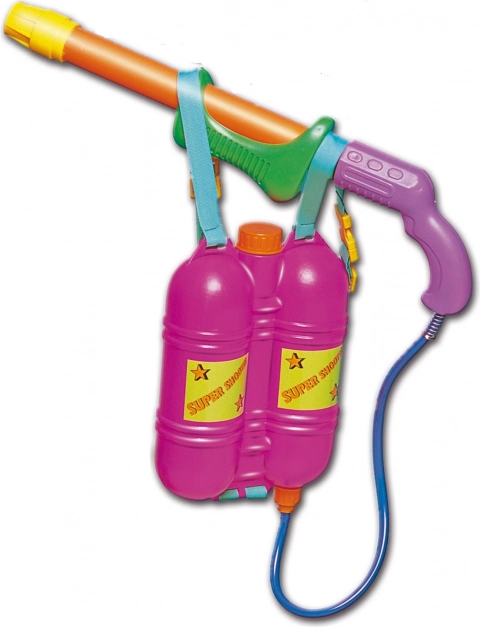 Zásobník s objemom 2,5 litra poskytuje dostatok vody pre nekonečné vodné bitky a vďaka popruhom sa pohodlne nosí na chrbte.