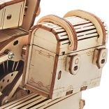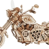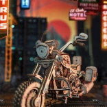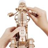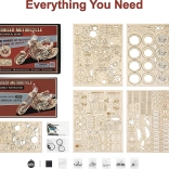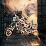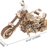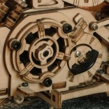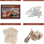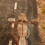 Táto drevená mechanická motorka je skvelou voľbou pre všetkých, ktorí milujú dizajn, techniku a poctivú ručnú prácu. Naťahovací pružinový strojček so spúšťou rozhýbe model do svižnej jazdy, zatiaľ čo funkčné riadidlá umožnia čiastočné vedenie smeru. Realistický chod motora krásne dopĺňa pohyb piestov a funkčné odpruženie prednej vidlice.