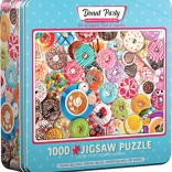 Štýlové puzzle EUROGRAPHICS v limitovanom darčekovom balení poteší každého milovníka skladania. Motív „Donutová oslava“ je plný farieb a detailov, ktoré vás pri skladaní vtiahnu a zabavia na dlhé hodiny. Kovová krabička s embosovaným vekom dodáva produktu prémiový vzhľad a slúži aj ako praktický úložný box.