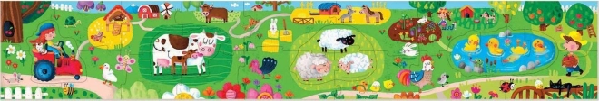 Puzzle obsahuje štyri samostatné obrázky s 1-4 dielmi, čo dohromady číta 10 dielov, ktoré môžu deti skladať podľa svojej fantázie. Navyše obsahuje 16 okolitých dielov, ktoré spoločne tvoria celkový obraz o dĺžke takmer 1 meter. Týmto spôsobom sa deti nielen zabávajú, ale tiež sa učia jednoduchému počítaniu, pretože počet dielov zodpovedá počtu postavičiek a zvieratiek na puzzle.
