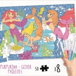 Omaľovánka puzzle Morské panny je skvelou voľbou pre každého malého umelca. Tento zábavný set obsahuje: