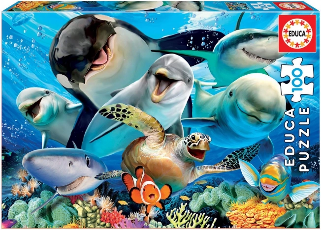 Objavte čaro zábavy s puzzle Educa, ktoré obsahuje stovku dielikov a nádherný motív podvodných selfies, ktorý nadchne každého milovníka morského sveta.