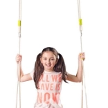 Užívajte si relax aj zábavu na záhrade s hojdacím kruhom WOODY. Veľký priemer 103 cm poskytuje dostatok priestoru na pohodlné sedenie na plachtovom sedadle, zatiaľ čo penový návlek na konštrukcii zvyšuje bezpečnosť pri hojdani. Hojdačka je určená na vonkajšie použitie a ľahko ju zavesíte pomocou kovových krúžkov na závesných lanách.