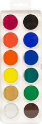 Plastový obdĺžnikový farebník je ľahký, odolný a praktický na prenášanie do školy alebo ateliéru. Sada 12 farieb pokryje základnú paletu na maľovanie na papier, kartón či bloky na akvarel.