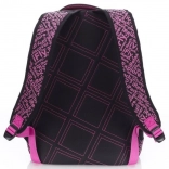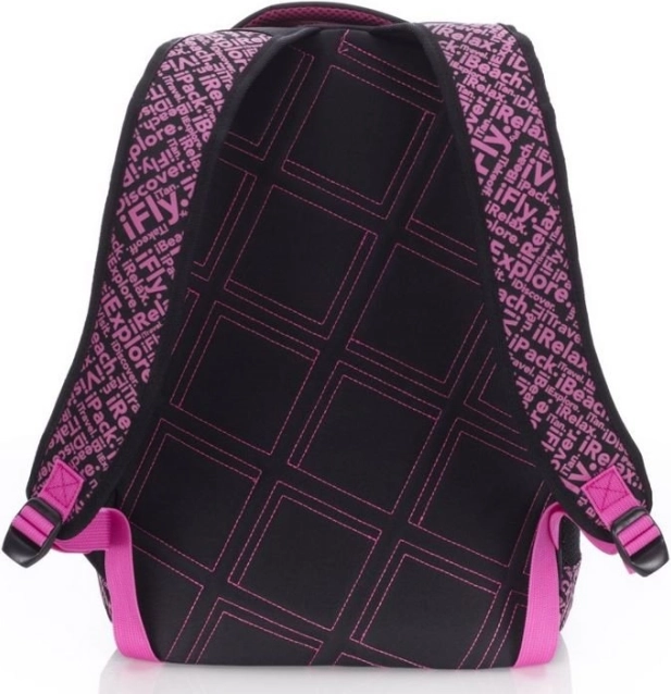 Čierny batoh s ružovými akcentami, ktorý kombinuje štýl s praktickosťou, vhodný pre každodenné použitie.