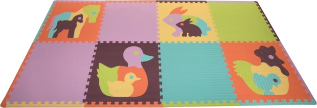 Tieto penové puzzle sa skladajú z ôsmich veľkých štvorcových dielov a dvanástich okrajových dielikov, ktoré spolu tvoria rozmer cca 244 x 124 cm. Každý dielik má rozmer 60 x 60 cm, bez okrajov od zubu po výrez. Bezpečná, mäkká a umývateľná podložka tlmí hluk a izoluje od chladu, čo ju robí ideálnou ako hrací koberec pre detské izby.