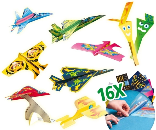 Vyrob si vlastné papierové lietadlo a zaži kopec zábavy! Táto kreatívna sada obsahuje všetko, čo potrebuješ na zostavenie až 16 modelov. Vyber si motív zo šablón, zlož lietadlo a dozdob ho samolepkami. Ideálne na rozvoj jemnej motoriky a kreativity. Až 16 lietadiel v jednom balení, jednoduché skladanie a zábavné zdobenie pre deti od 6 rokov.