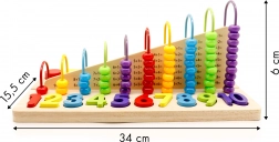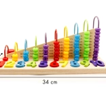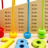 Súčasťou sady je drevená doska s operáciami sčítania a odčítania. Presúvaním korálkov z jednej strany na druhú dieťa dosiahne výsledky, čo je skvelý spôsob, ako sa naučiť riešiť jednoduché rovnice.
