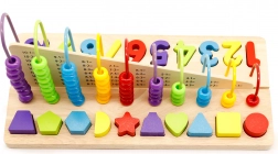 Objavte svet čísel a tvarov s touto zábavnou a vzdelávacou hračkou. Farebné korálky na drôtoch ponúkajú vizuálny a hmatový zážitok, podporujúci rozvoj základných matematických operácií ako sčítanie a odčítanie. Každý prvok je navrhnutý tak, aby pomáhal s rozpoznávaním tvarov a čísel. Súčasne hračka rozvíja jemnú motoriku a kreativitu.