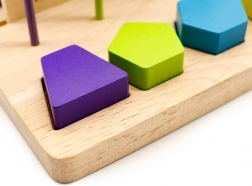 Okrem počítadla sú súčasťou sady aj farebné drevené tvary a čísla. Podporte rozpoznávanie tvarov a orientáciu v číslach.