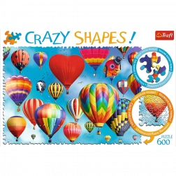 Crazy Shapes! Táto séria predstavuje najbláznivejšie puzzle na svete, kde kocky majú neobvyklý, šialený tvar a nenájdete žiadne priame línie. Tento produkt obsahuje 600 dielikov a obrázok ukazuje lietajúce farebné balóny.