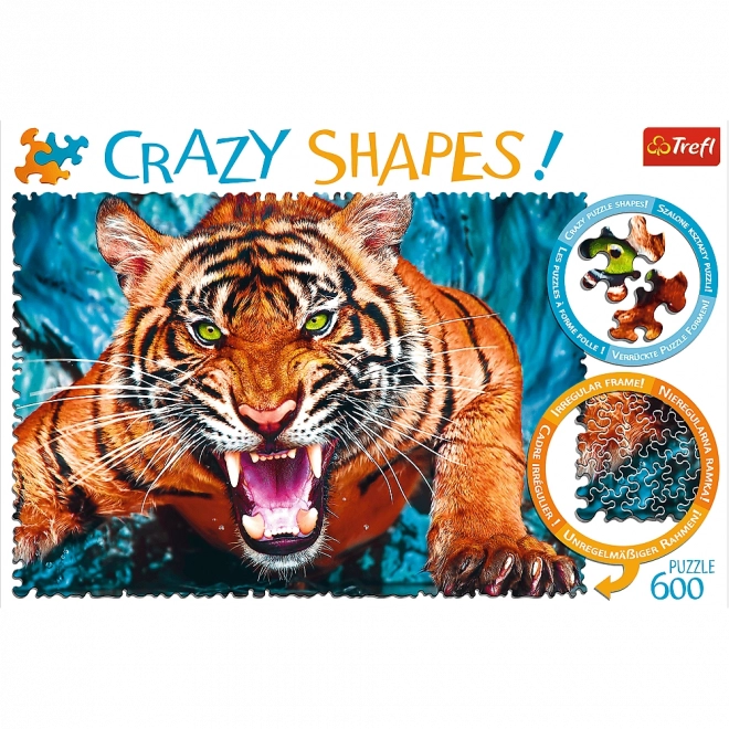 Objavte Puzzle Crazy Shapes, revolučnú sériu, ktorá prináša dieliky s netradičnými tvarmi, bez rovných hrán a s nepravidelným okrajom. Po zložení vznikne obrázok o rozmeroch 680 x 480 mm, ktorý zobrazuje impozantného tigra.