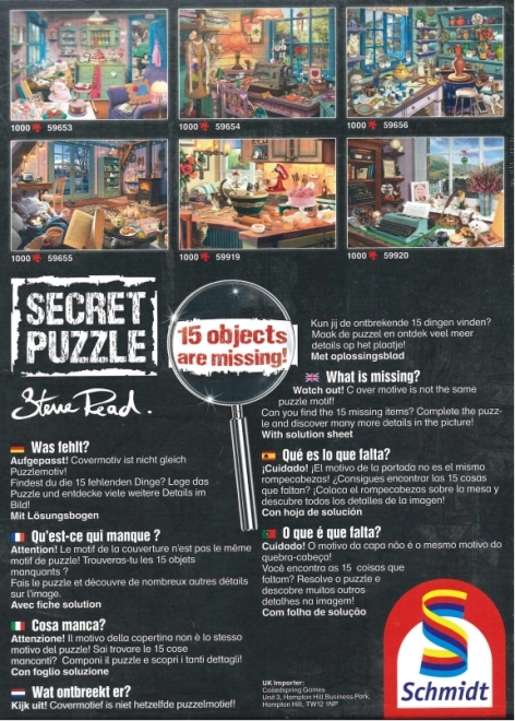 Puzzle Tátoova dielňa zo Secret kolekcie od značky Schmidt prináša 1000 dielikov zábavy a napätia s 15 skrytými tajomstvami, ktoré čakajú na odhalenie.