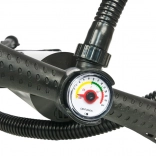 Set je pripravený vyraziť ihneď na vodu: obsahuje trojdielne hliníkové pádlo s nastaviteľnou dĺžkou 165–210 cm, vysokotlakovú ručnú pumpu s manometrom, opravárenskú sadu a priestranný prepravný batoh. Tri plutvy (dve pevné + jedna nasúvacia) pomáhajú držať smer a zvyšujú ovládateľnosť.