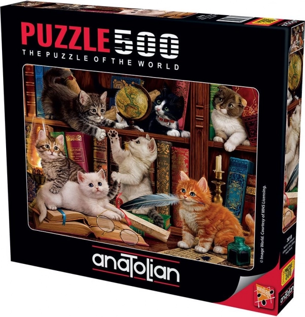 Puzzle Mačičky v knižnici pre milovníkov mačiek a skladania puzzlí s vôňou knižnice. Perfektná relaxácia pre celú rodinu.