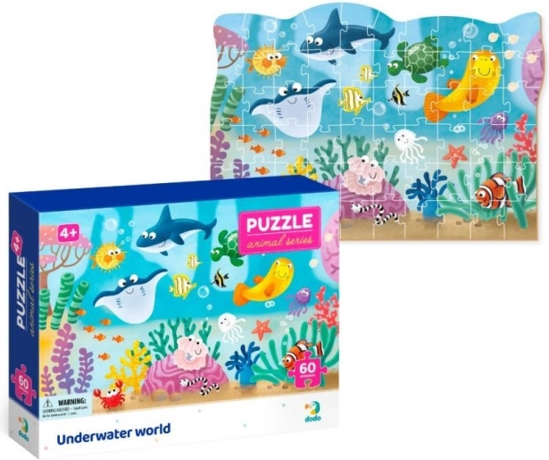 Objavte čaro oceánu s detským puzzle DODO s motívom podmorského sveta. Skladačka s 60 dielikmi ponúka krásne ilustrácie, kvalitné spracovanie a obrysový okraj pre jednoduchšie skladanie. Hotový obrázok má rozmer 32 × 23 cm a možno ho prepojiť s ďalšími scénami zo série Svet zvierat. Vhodné pre deti od 4 rokov.