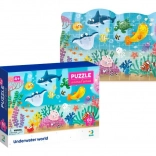 Detské puzzle DODO s motívom podmorského sveta prináša pestré ilustrácie morských zvierat a zábavné učenie formou hry. Vďaka obrysovému okraju sa deti ľahšie zorientujú a rýchlejšie dosiahnu výsledok, čo posilňuje ich trpezlivosť, sústredenie aj jemnú motoriku.